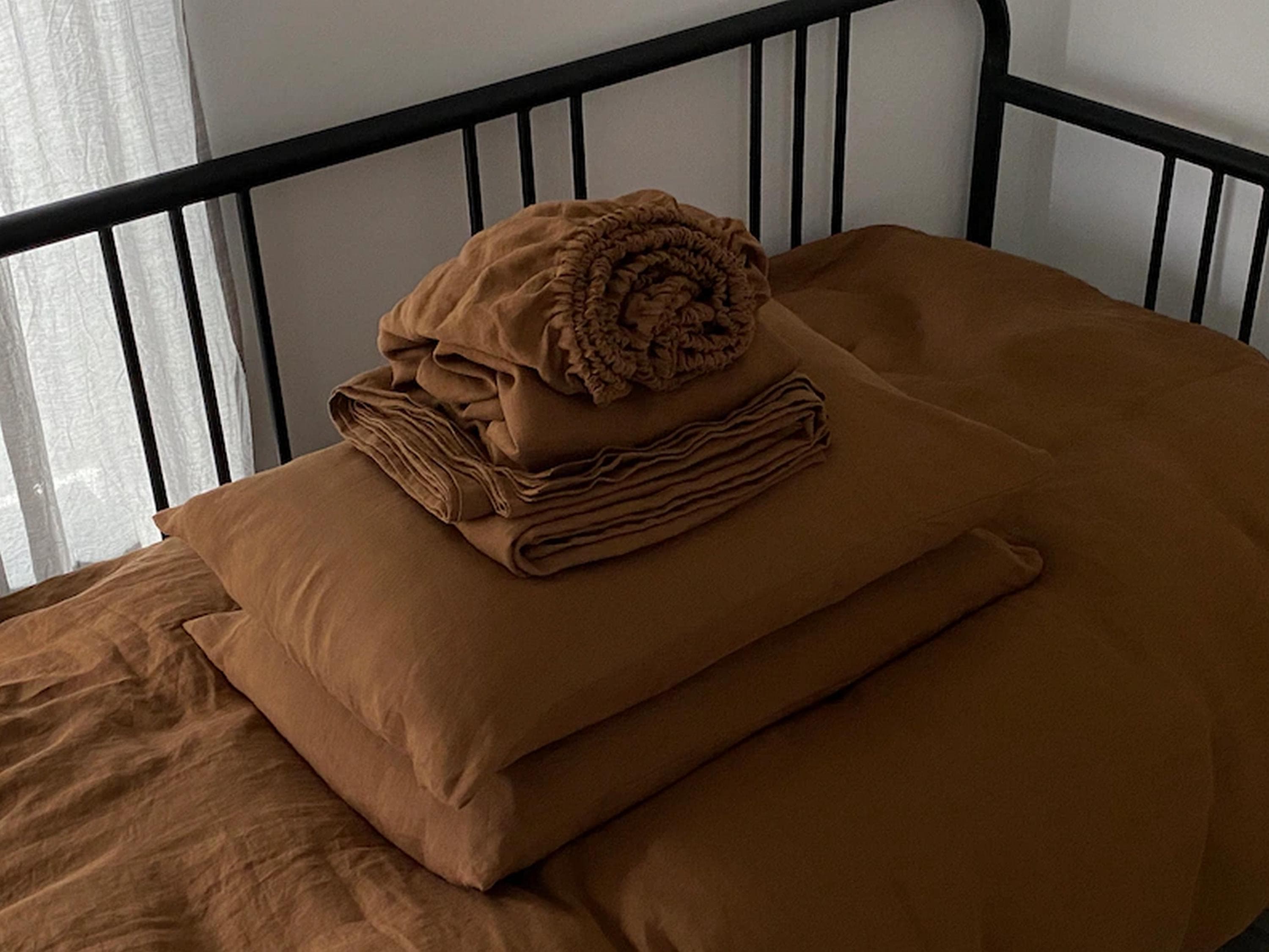 AUTUMN GRASS natural 100% HEMP seamless sheet & two pillowcases set